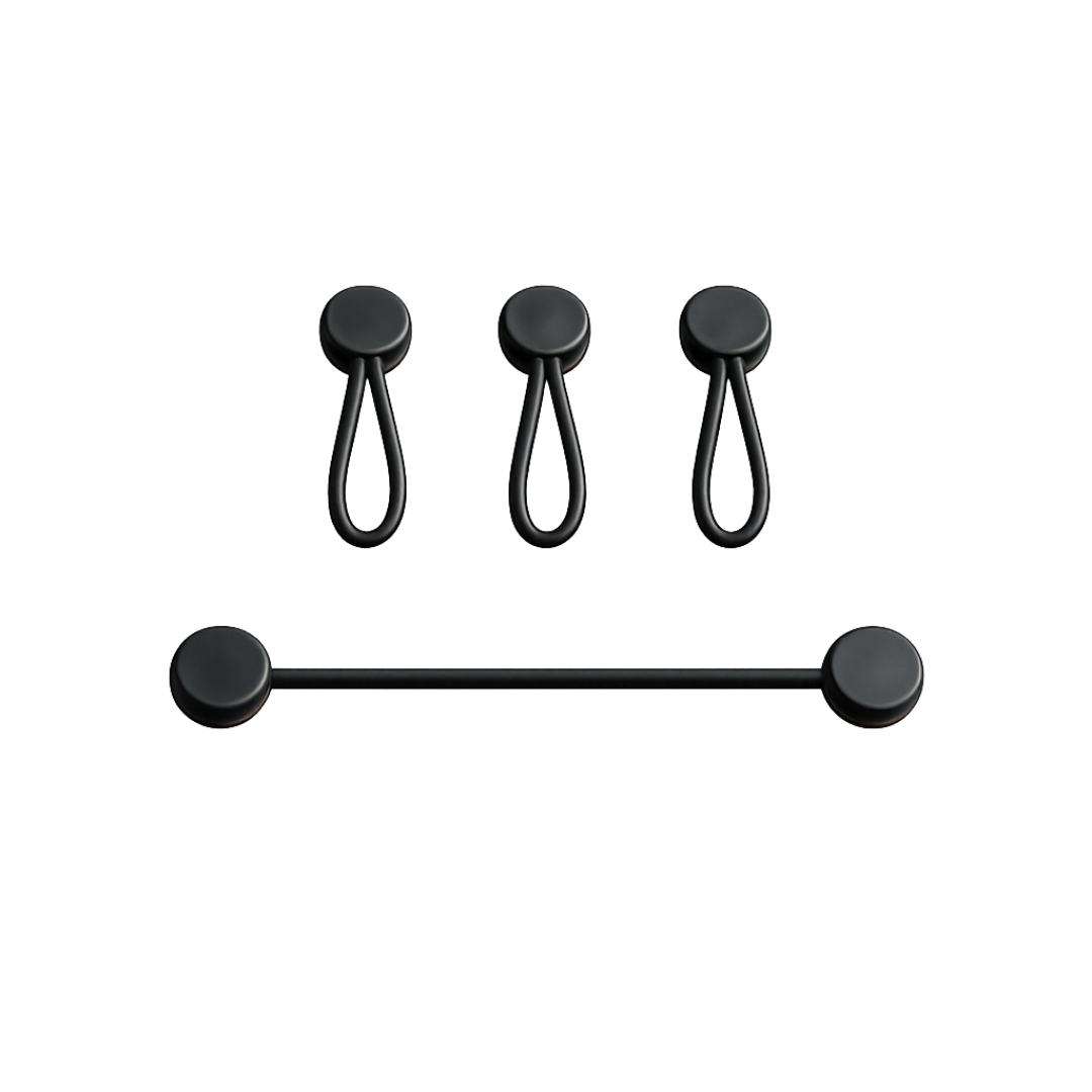 Les puissants aimants en néodyme permettent de regrouper en une fraction de seconde les câbles de charge ou informatiques, sans endommager leur surface. Cet ensemble offre jusqu’à 20 possibilités pour un espace de travail parfaitement organisé.
