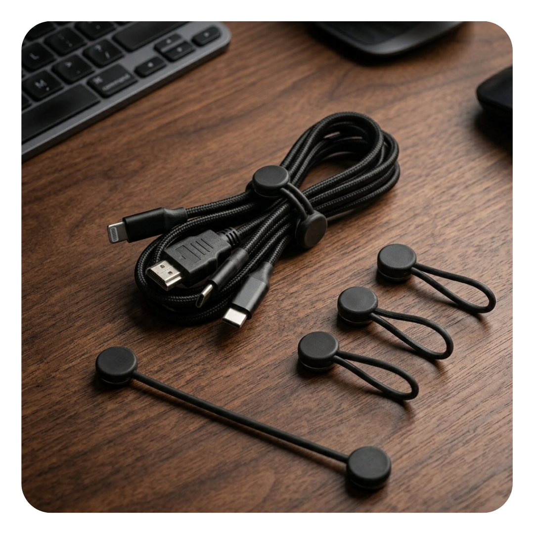 Prenez le contrôle du désordre grâce à un ensemble de 20 attaches magnétiques flexibles qui permettent d’organiser instantanément vos câbles. Fabriquées en silicone durable, elles constituent une alternative esthétique et réutilisable aux attaches en plastique et aux bandes Velcro rugueuses.