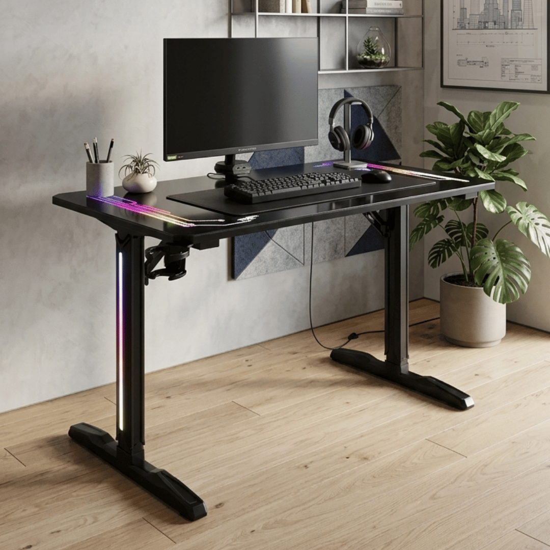 FREEZE V2 fonctionne très bien avec un ensemble informatique basé sur un ou deux moniteurs ou avec un ordinateur portable. Il sera également parfait comme station pour consoles vidéo. La taille compacte du bureau signifie que le bureau s’adaptera même dans de très petites pièces. Malgré ses petites dimensions, il peut accueillir de nombreux accessoires et appareils externes utilisés pour jouer ou travailler.