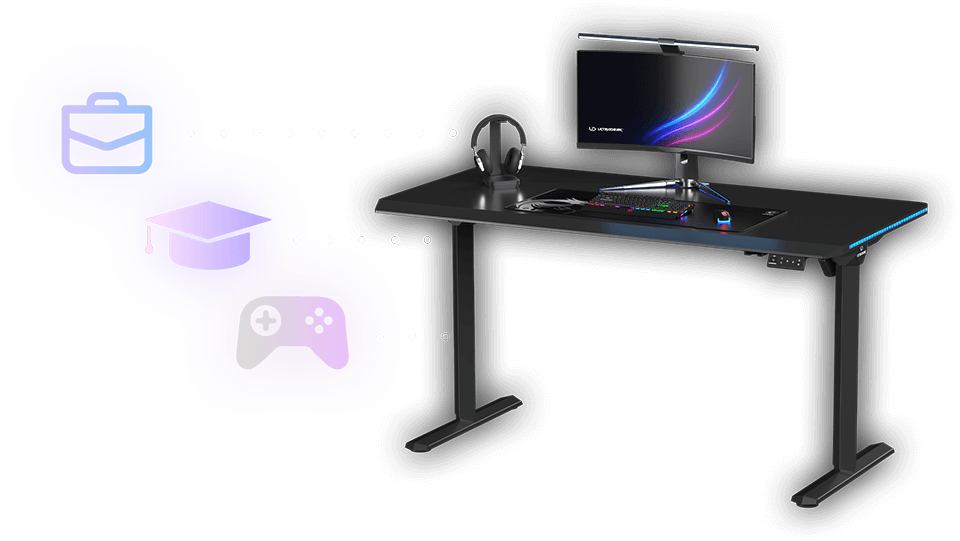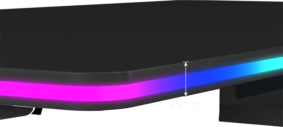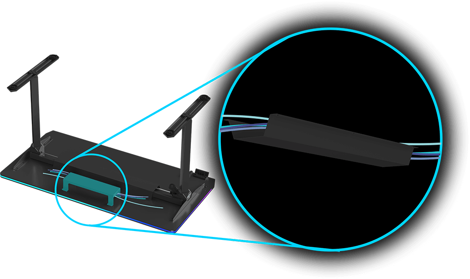Ce nouveau design de bureau permet aux utilisateurs d’étendre confortablement leurs jambes sous le plateau. Fini les douleurs liées au contact des pieds avec le métal dur : le confort est nettement amélioré lors des longues sessions de jeu. L’absence de traverse inférieure facilite également le placement de boîtiers PC hauts en dessous. Le cadre sans traverse inférieure offre une esthétique moderne et agréable.