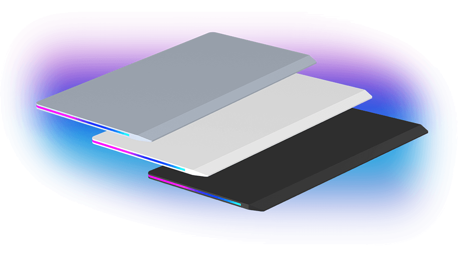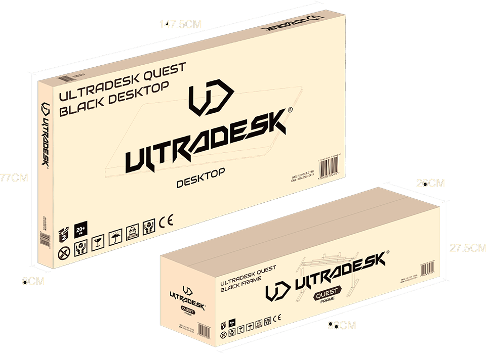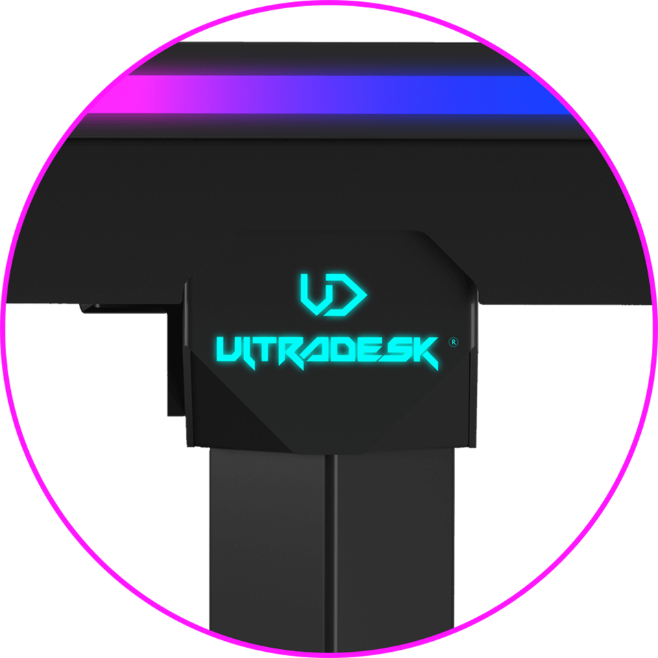 Les logos fluorescents ULTRADESK sont apposés sur les côtés du bureau. Fabriqués en matériau photosensible, ils confèrent au produit un caractère futuriste et dynamique sans nuire à l’esthétique générale du bureau. Dans l’obscurité, le logo attire immédiatement le regard, assurant une meilleure reconnaissance du produit.