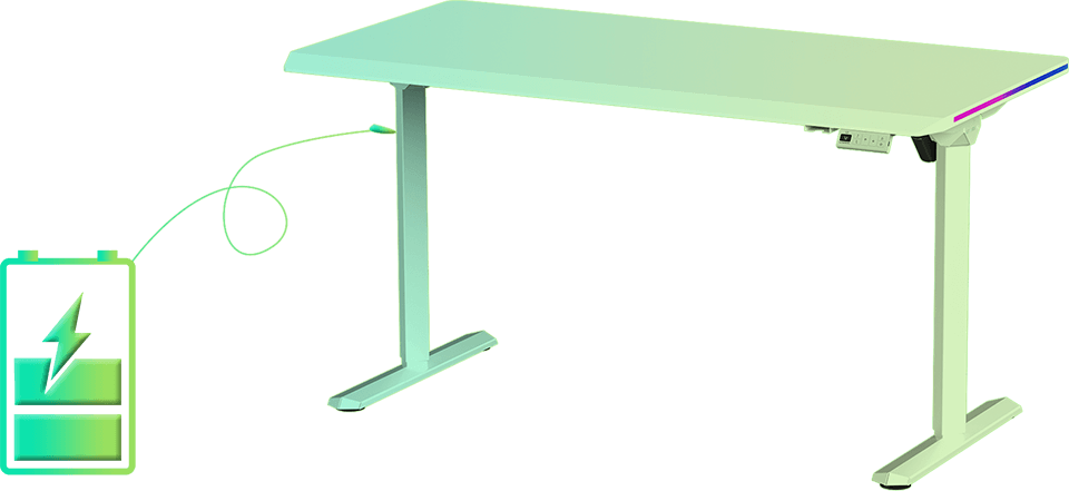 Le moteur du système de réglage en hauteur est exceptionnellement économe en énergie. L’électronique intégrée au panneau de commande du bureau est optimisée pour une consommation d’énergie minimale en veille. Notre système de réglage en hauteur est une solution écologique qui n’aura qu’un impact minime sur votre facture d’électricité. Grâce à son moteur économe en énergie, sa faible consommation en veille et son alimentation par le secteur, notre bureau est à la fois respectueux de l’environnement et économique. L’ensemble du système est alimenté par une prise standard de 230 V.