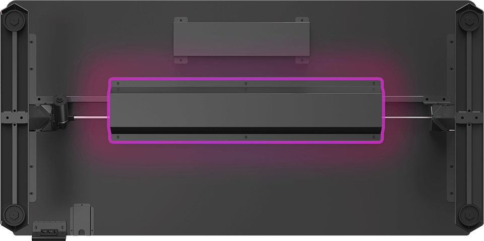 Donnez de la couleur à vos parties ! Grâce à notre technologie LED RGB PRISMATIC, l’éclairage est bien plus intense que celui des LED RGB classiques. Entièrement intégré à la table, il est présent sur les deux côtés et sur tout le bord arrière. Il propose 7 couleurs fixes et 146 effets spéciaux. Le nombre de points d’éclairage en cascade est réglable individuellement. L’éclairage se contrôle à l’aide d’une mini-télécommande.