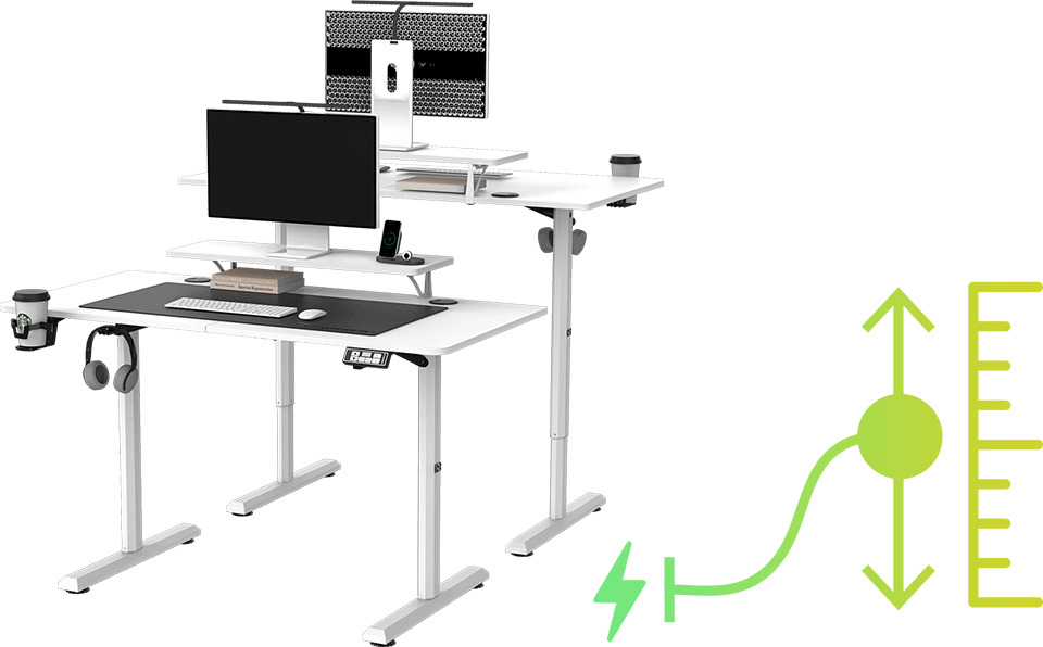 Le panneau de commande facile à utiliser vous permet non seulement d’élever et d’abaisser la surface de travail, mais vous permet également d’enregistrer vos hauteurs préférées. Le cœur du panneau est un processeur spécial qui garantit une parfaite synchronisation des deux moteurs pendant le levage. Le panneau de commande est installé sur le côté droit, juste en dessous du bord avant du bureau. Grâce à cela, vous n’aurez plus jamais besoin de vous lever de votre chaise pour modifier les réglages.