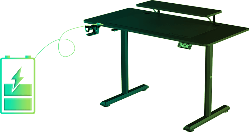 Le moteur utilisé dans le système de réglage de la hauteur est très économe en énergie. L’électronique installée dans le panneau de commande du bureau a été optimisée pour consommer le minimum d’énergie en mode veille. Notre système de réglage en hauteur est une solution écologique qui n’aura aucun impact notable sur votre facture d’électricité. Grâce à l’utilisation d’un moteur à économie d’énergie, à une consommation d’énergie minimale en mode veille et à l’utilisation d’une alimentation standard, notre bureau est respectueux de l’environnement et bénéfique pour le portefeuille de l’utilisateur. L’ensemble du système est alimenté par une prise principale traditionnelle de 230 V.