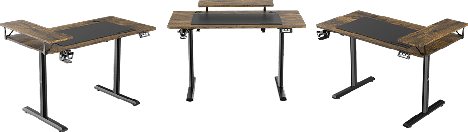 HIGHLANDER fonctionne parfaitement avec n’importe quel ordinateur basé sur un ou deux moniteurs, ou équipé d’un ordinateur portable. Le bureau sert également de base aux joueurs qui préfèrent les consoles vidéo. Grâce à la taille compacte de l’espace de travail, ce meuble s’intègre également dans de très petites pièces. Malgré sa petite taille, ce bureau offre suffisamment d’espace pour de nombreux accessoires et appareils externes utilisés pour jouer ou travailler.