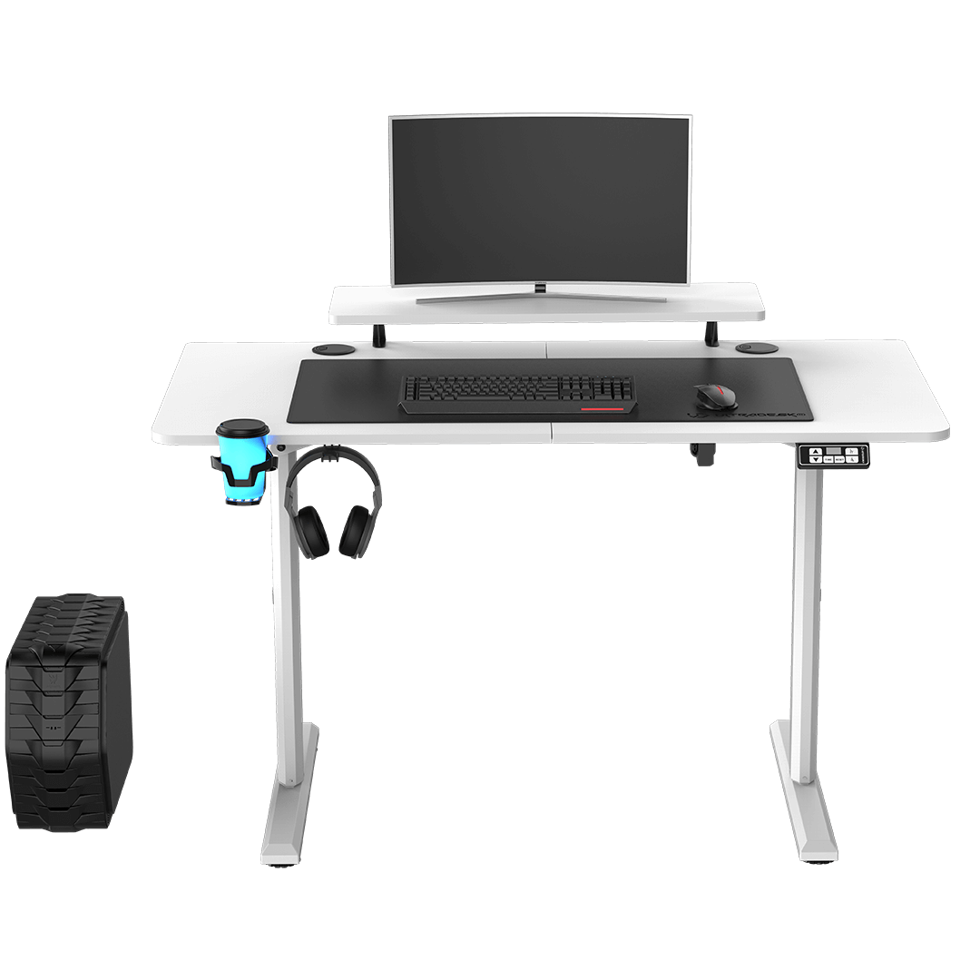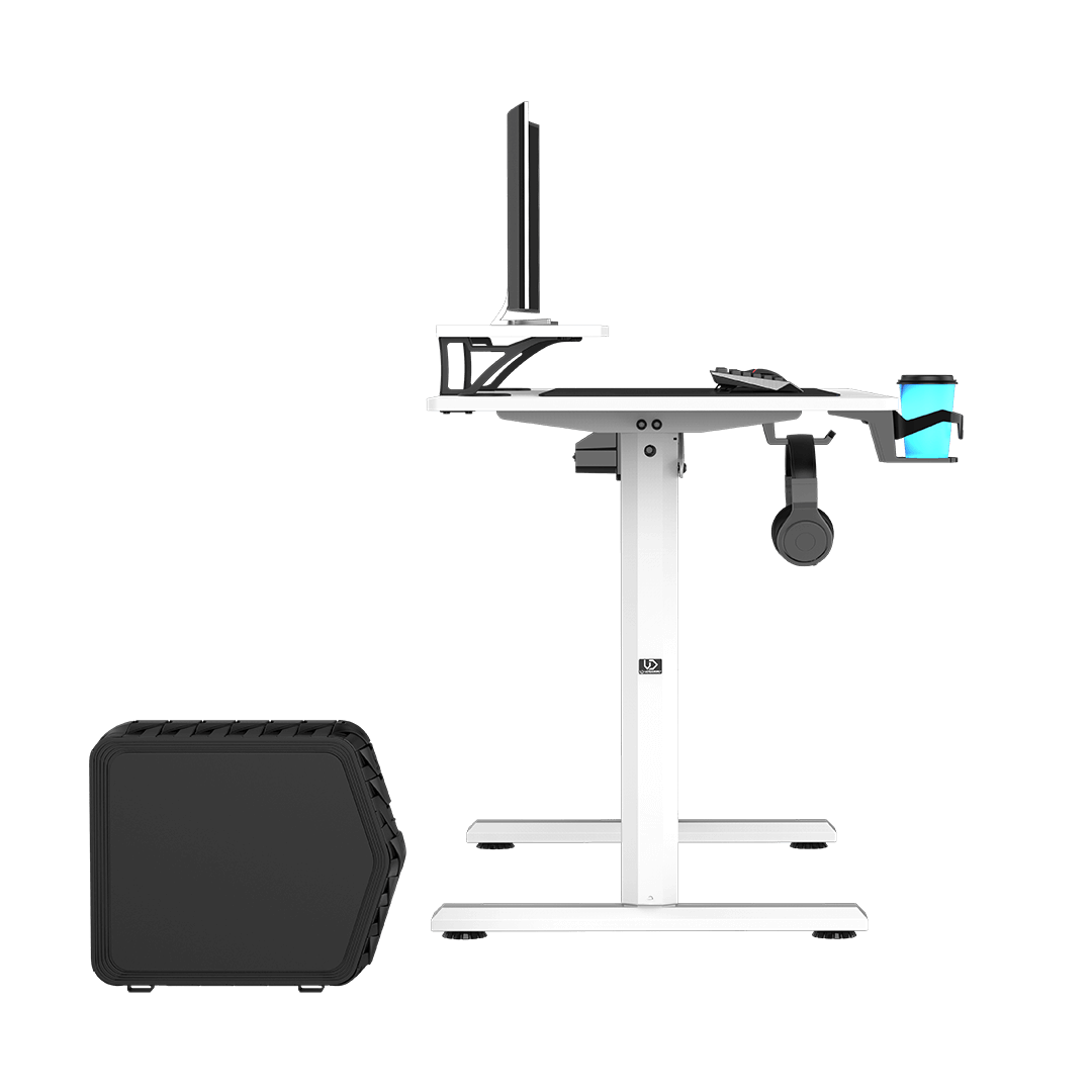 Un bureau d’ordinateur doit offrir une large gamme d’accessoires utiles. Sur le côté gauche du bureau, sous le bord avant, vous pouvez installer un porte-gobelet et un support pour casque (inclus dans le kit). Ces deux extensions ne sont pas que des décorations : la plupart des joueurs les utilisent quotidiennement.