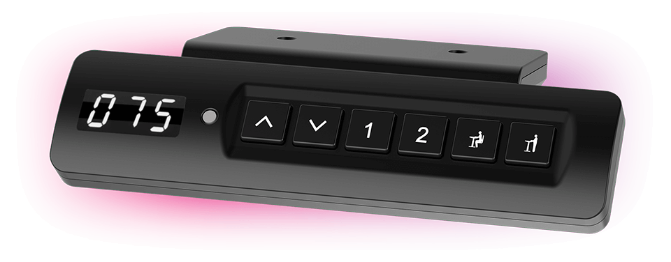 Grâce au panneau de configuration intuitif, vous pouvez non seulement régler la hauteur du plateau de travail, mais aussi enregistrer vos réglages favoris. Au cœur du panneau se trouve un processeur spécial qui garantit une synchronisation parfaite lors du réglage. Un petit écran informe l’utilisateur de l’activation des fonctions sélectionnées et de la hauteur actuelle. Le panneau de configuration est monté sur le côté droit, juste en dessous du bord avant du bureau. Ainsi, vous n’avez jamais besoin de vous lever de votre chaise pour modifier les réglages.