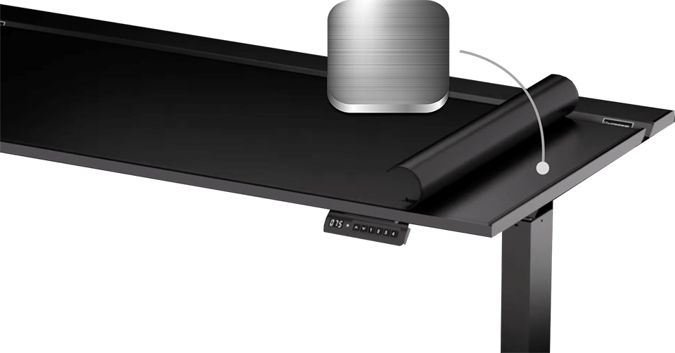 Le bureau est fourni avec un tapis de souris XXL qui couvre toute la surface. Sa surface supérieure est compatible avec tous les types de capteurs utilisés sur les souris d’ordinateur actuelles. Que vous utilisiez une souris optique, laser ou mécanique, le tapis garantit une excellente précision et une utilisation fluide. Toute la surface est soigneusement sécurisée par des coutures épaisses sur les bords, ce qui non seulement la protège des déchirures, mais contribue également à son esthétique. Le dessous du tapis est recouvert d’un matériau magnétique qui assure une excellente adhérence à la surface métallique du bureau. Cela garantit la stabilité du tapis et empêche tout glissement, même lors d’une utilisation intensive.